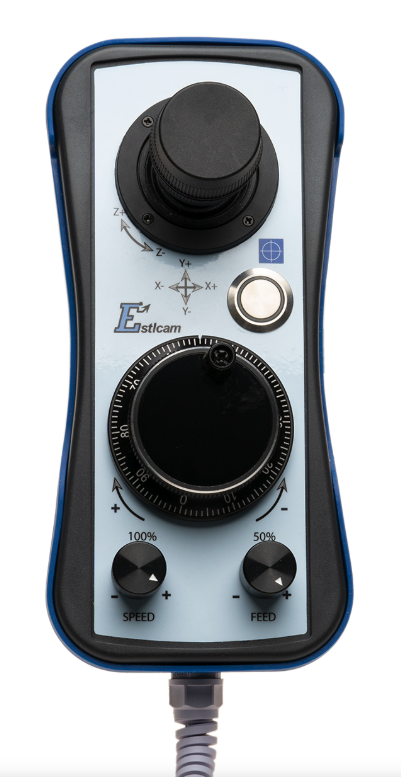Der Drehgeber bewegt immer die Achse, die zuletzt mit dem Joystick verfahren wurde - also automatisch die richtige.