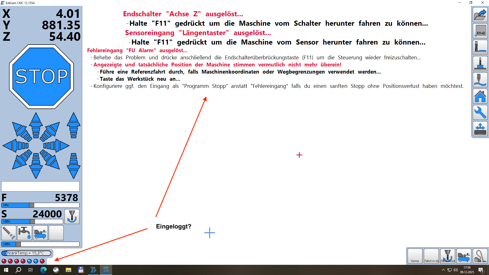 Falls versäumt wurde sich einzuloggen, erscheint folgender Bildschirm nach starten des CNC-Programms: