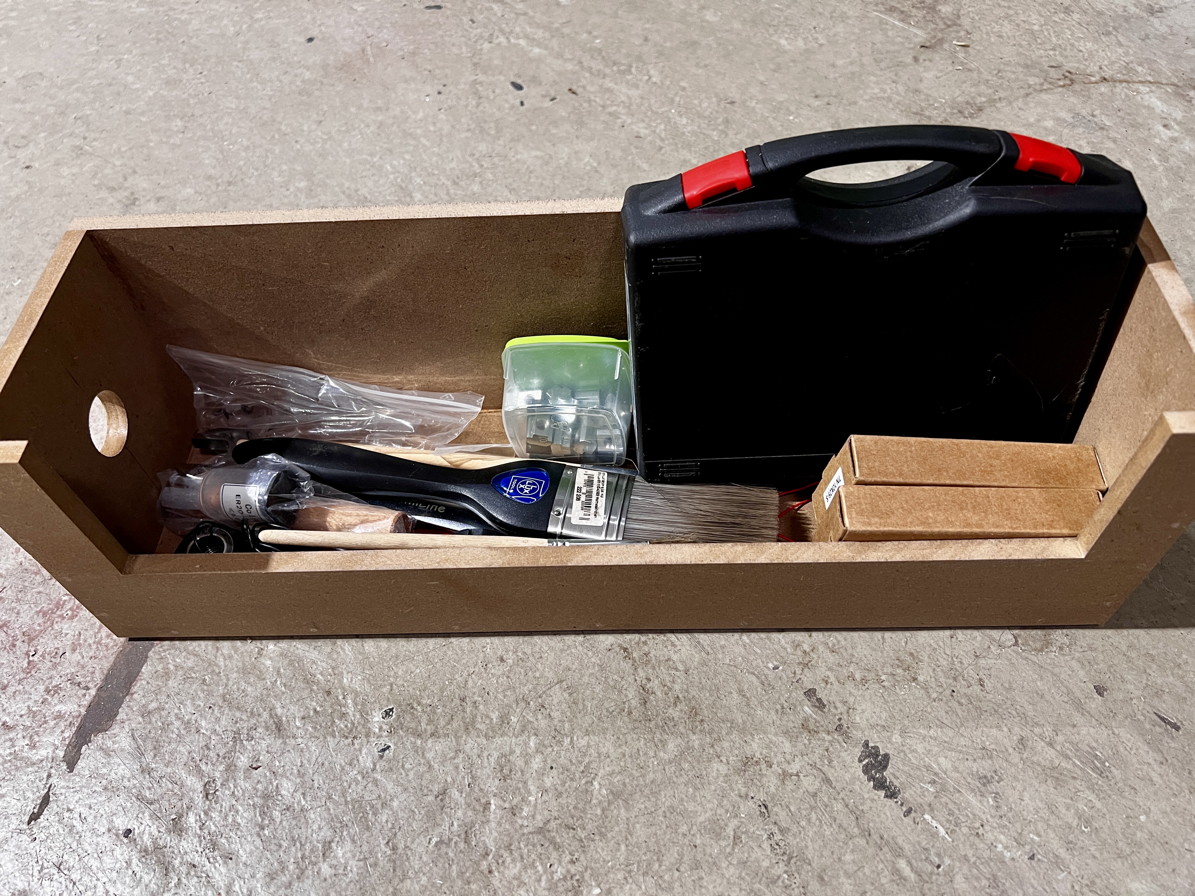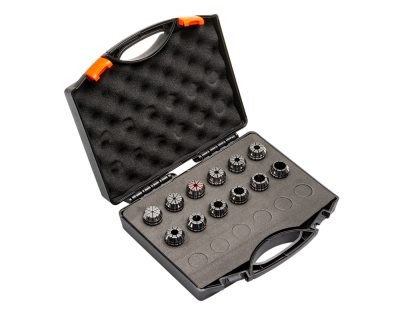 Die Box im TOLO-2 beinhaltet alle notwendigen Zubehörteile wie Spannmutter, Spannzangen, Spannschlüssel, Hakenschlüssel, Konuswischer, Reinigungspinsel, T-Nutenmuttern usw.